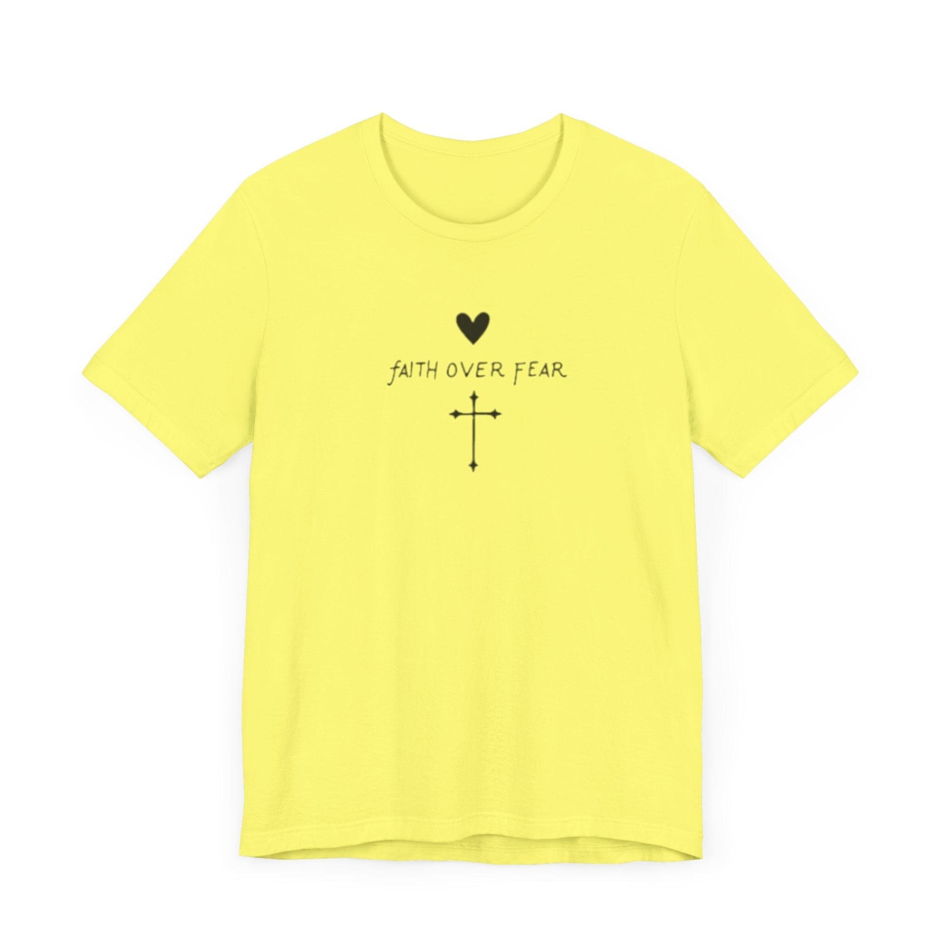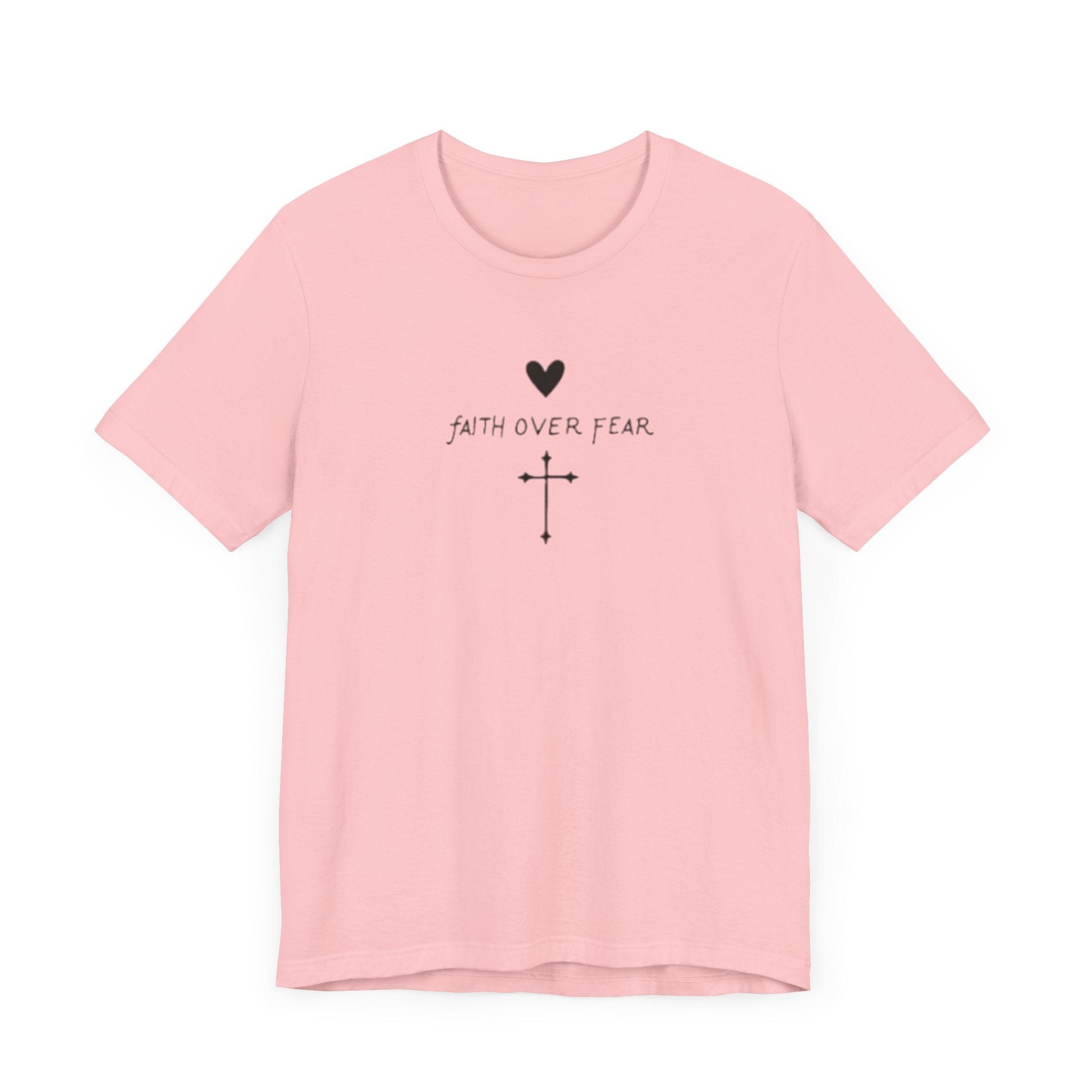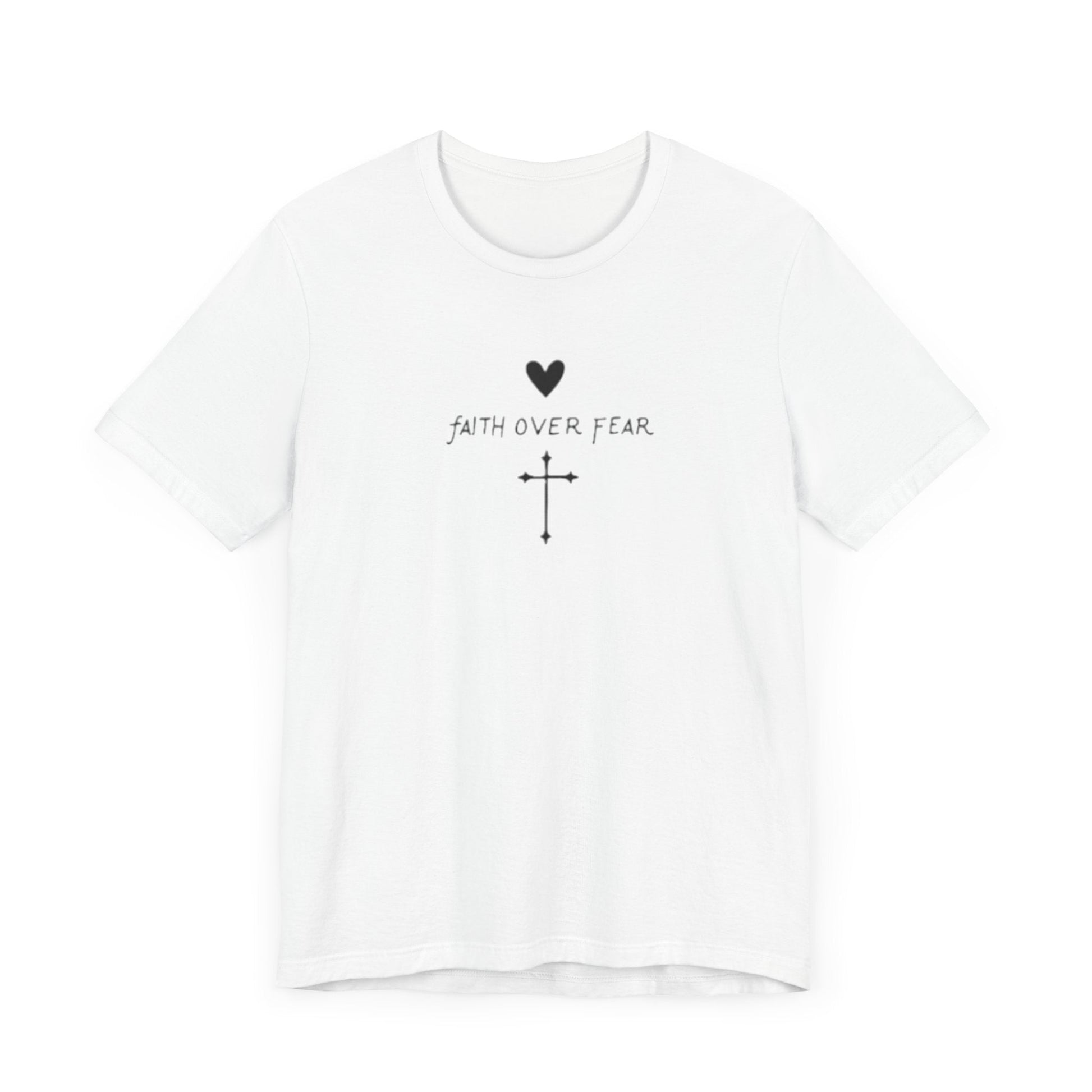 Embrace a mantra of hope with this minimalist design featuring "Faith Over Fear" near the heart, complemented by an elegant cross. Perfect for those who appreciate subtlety and strength in their style.