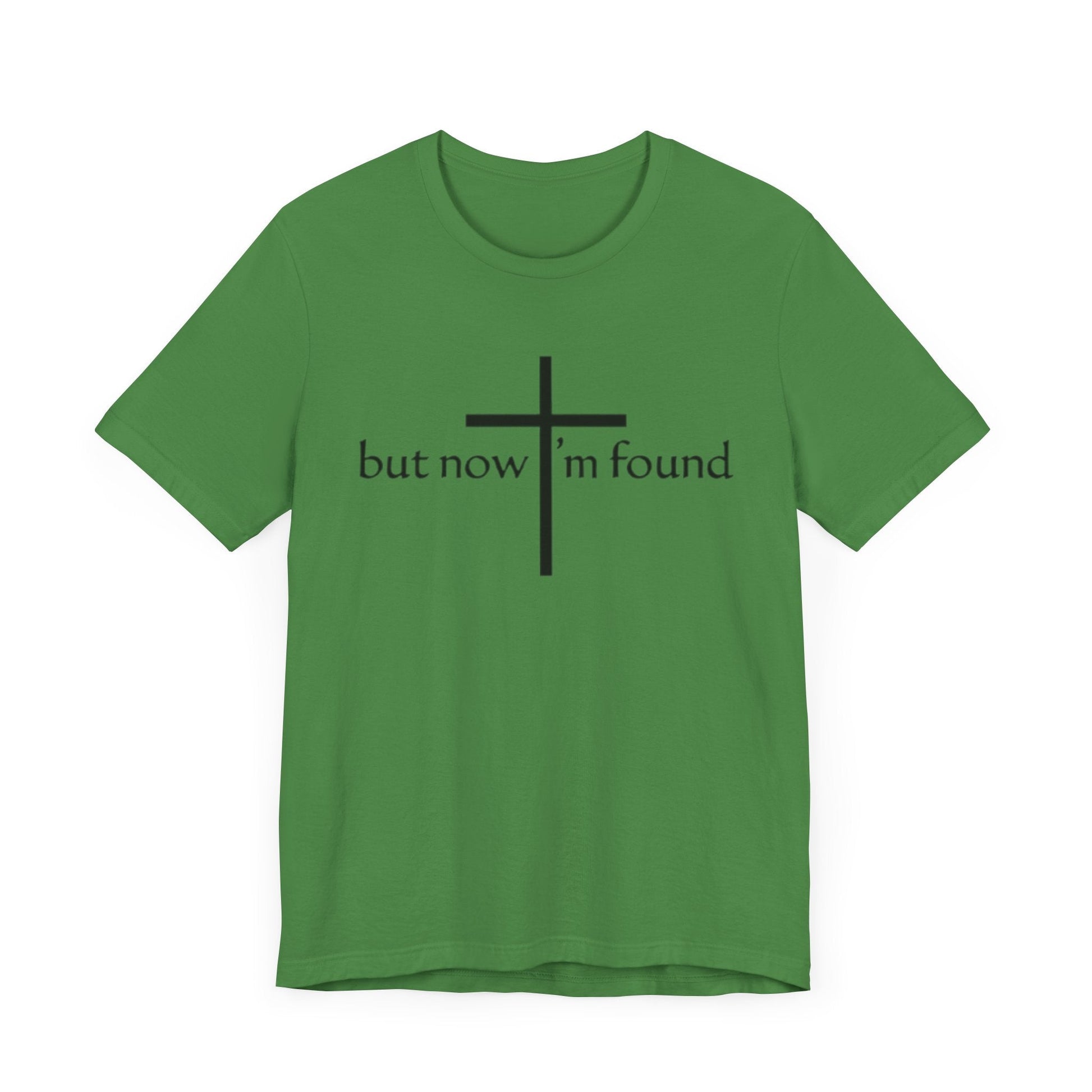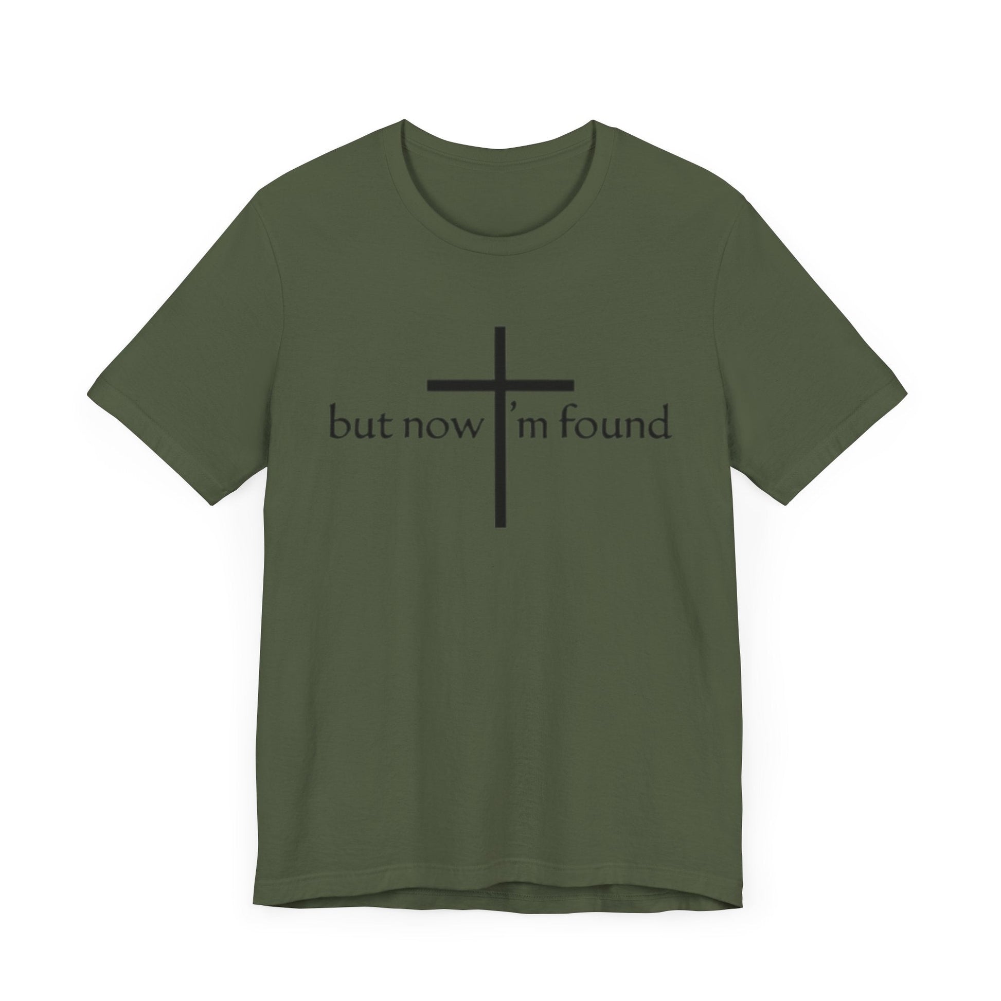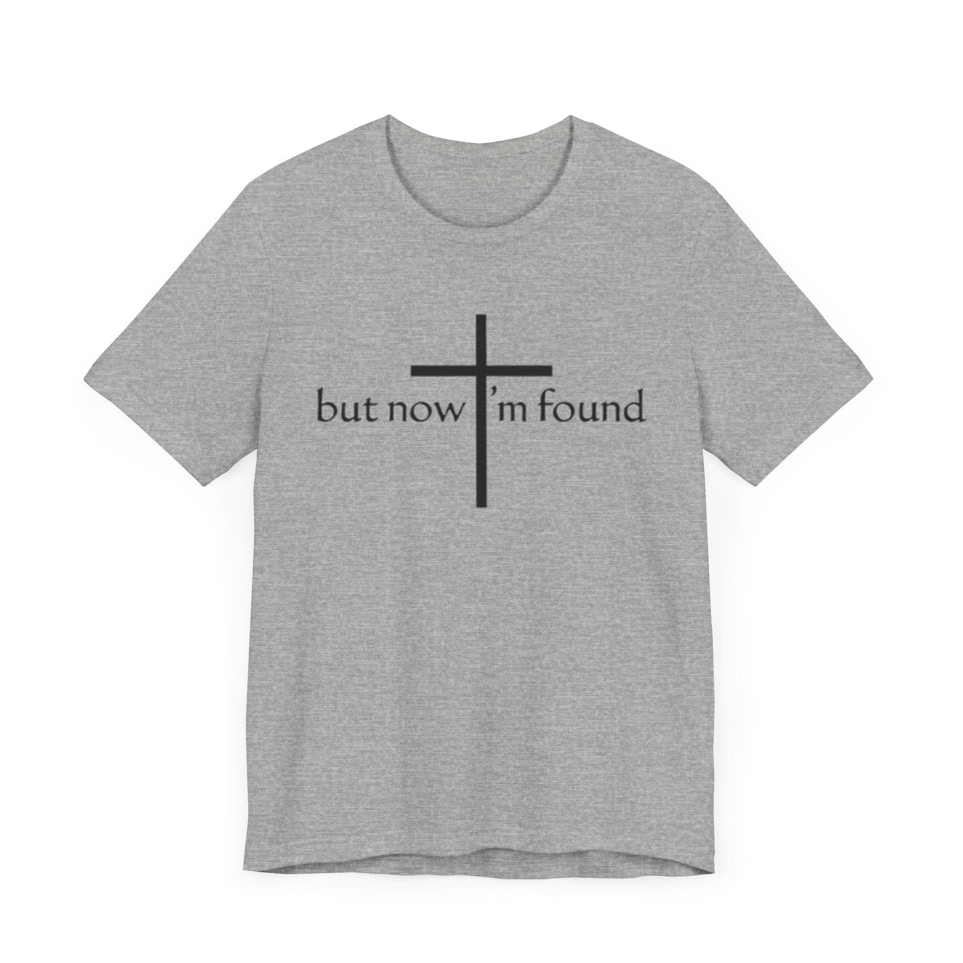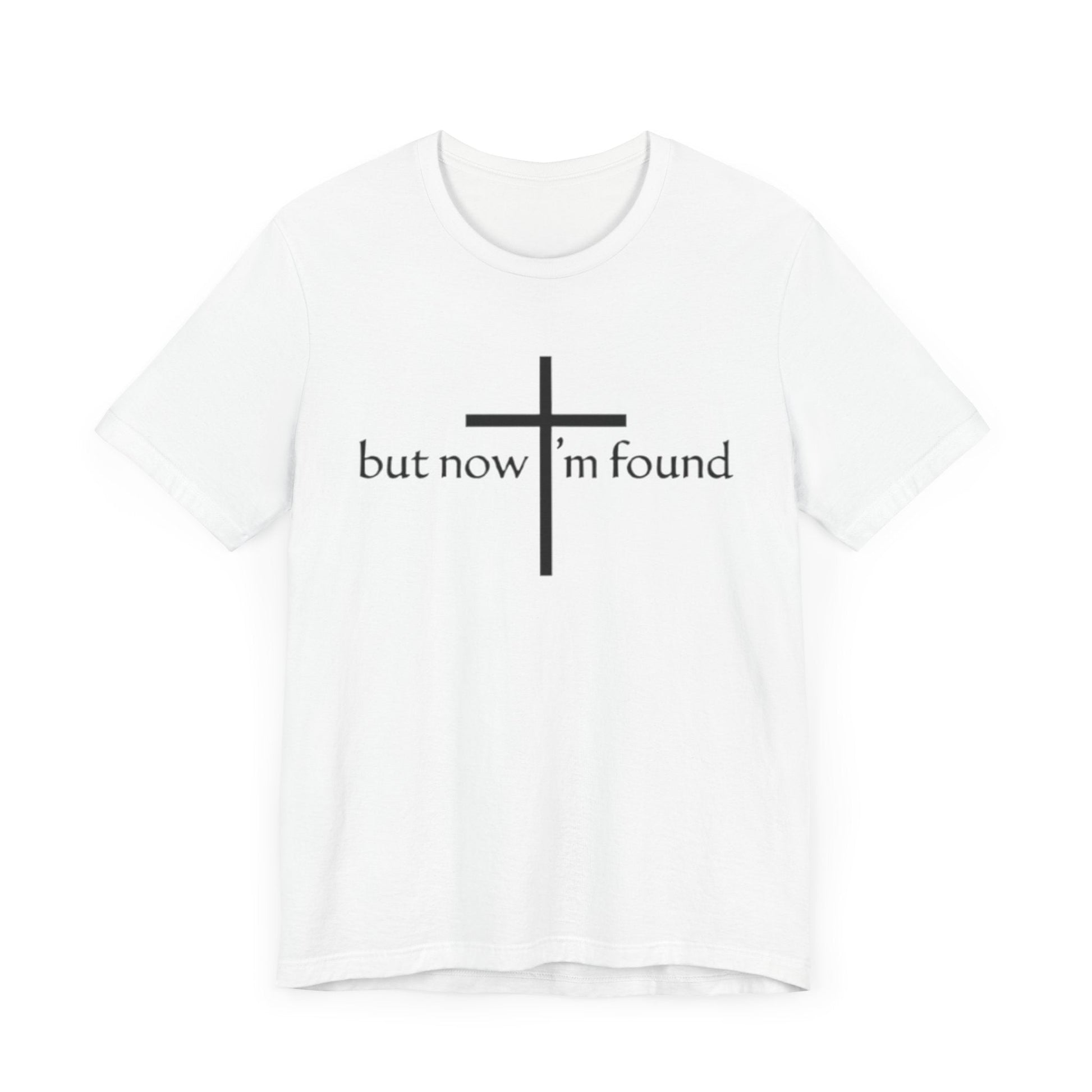 This striking design features the words but now I'm found artistically blended with a minimalist cross. The bold font and clean black and white palette evoke themes of discovery and inner reflection.