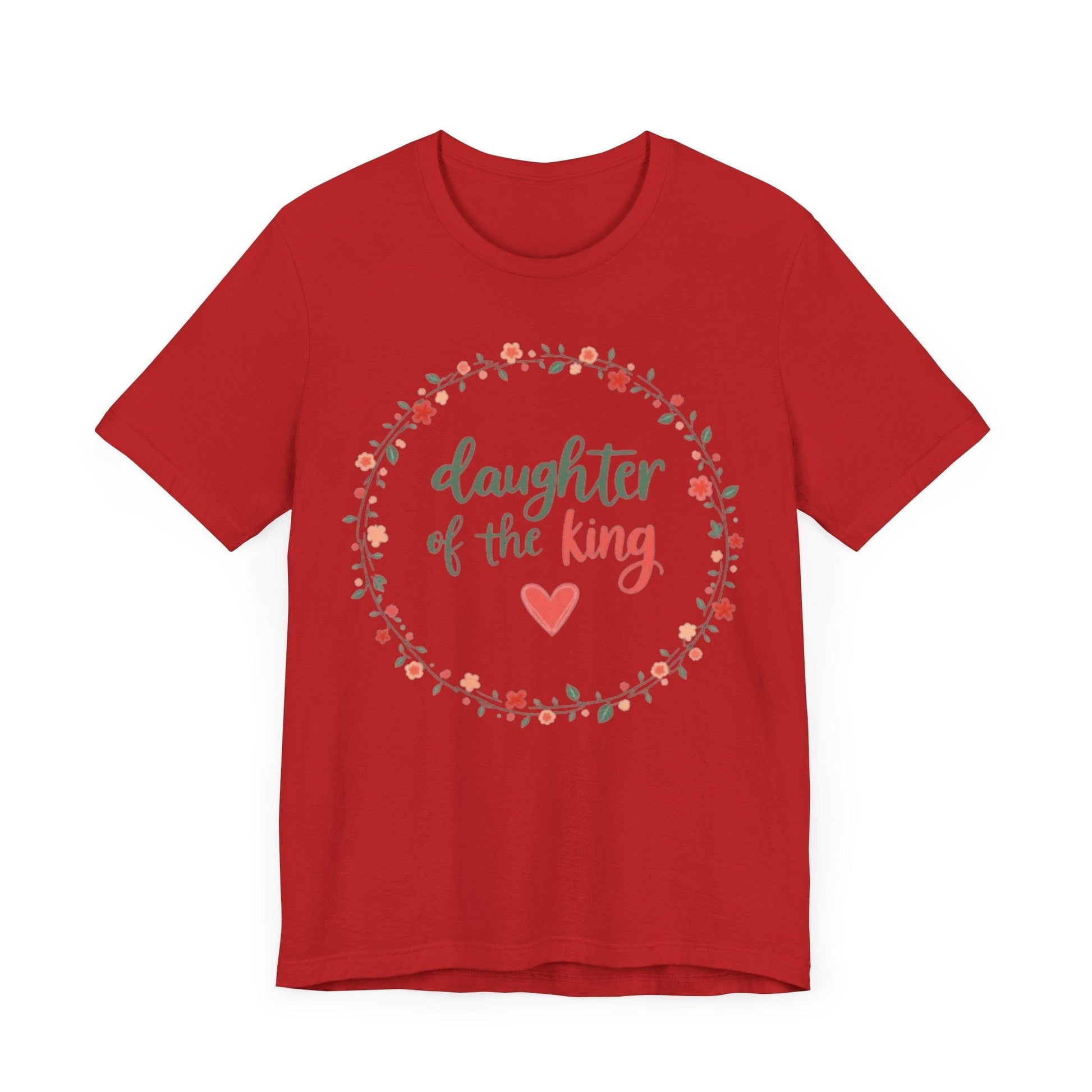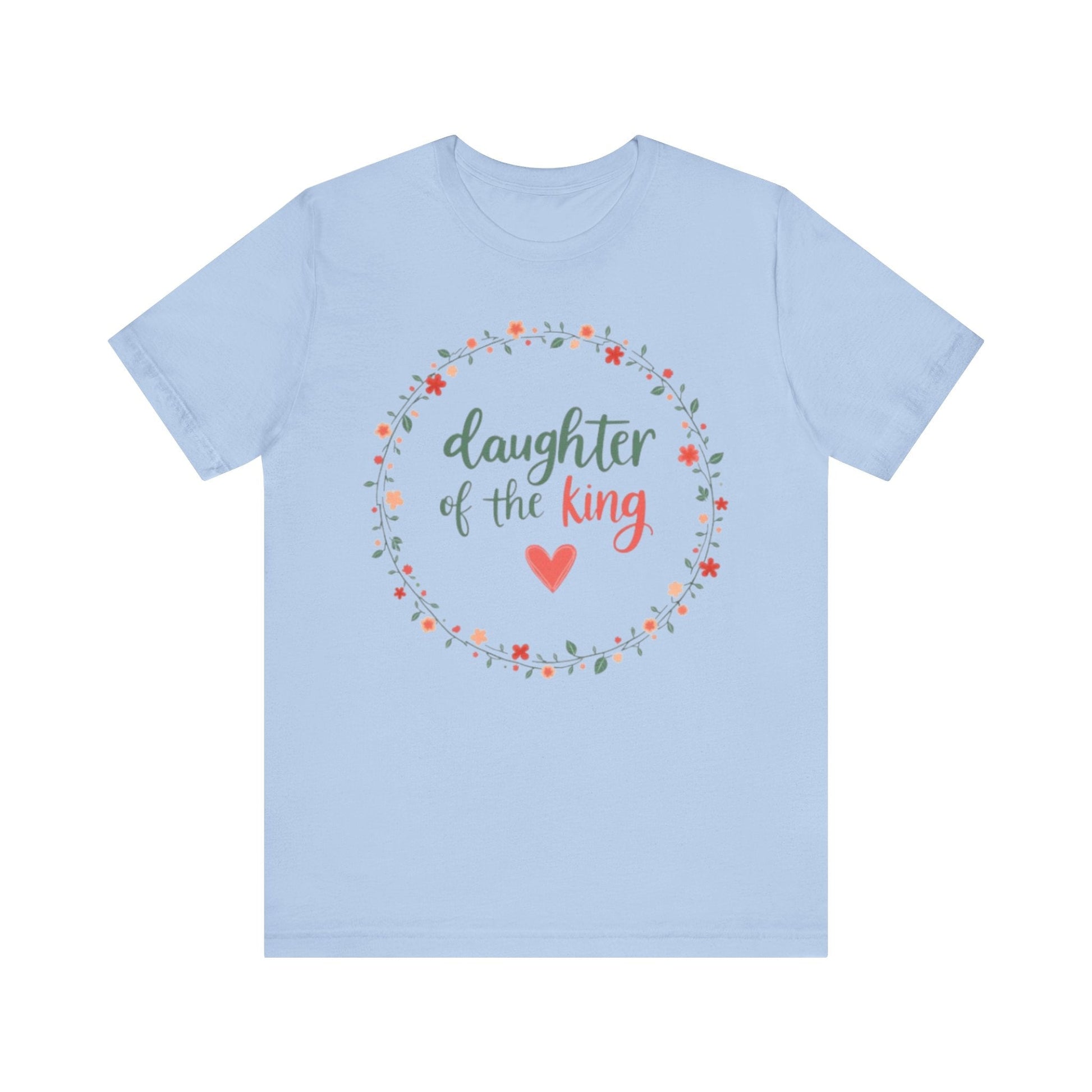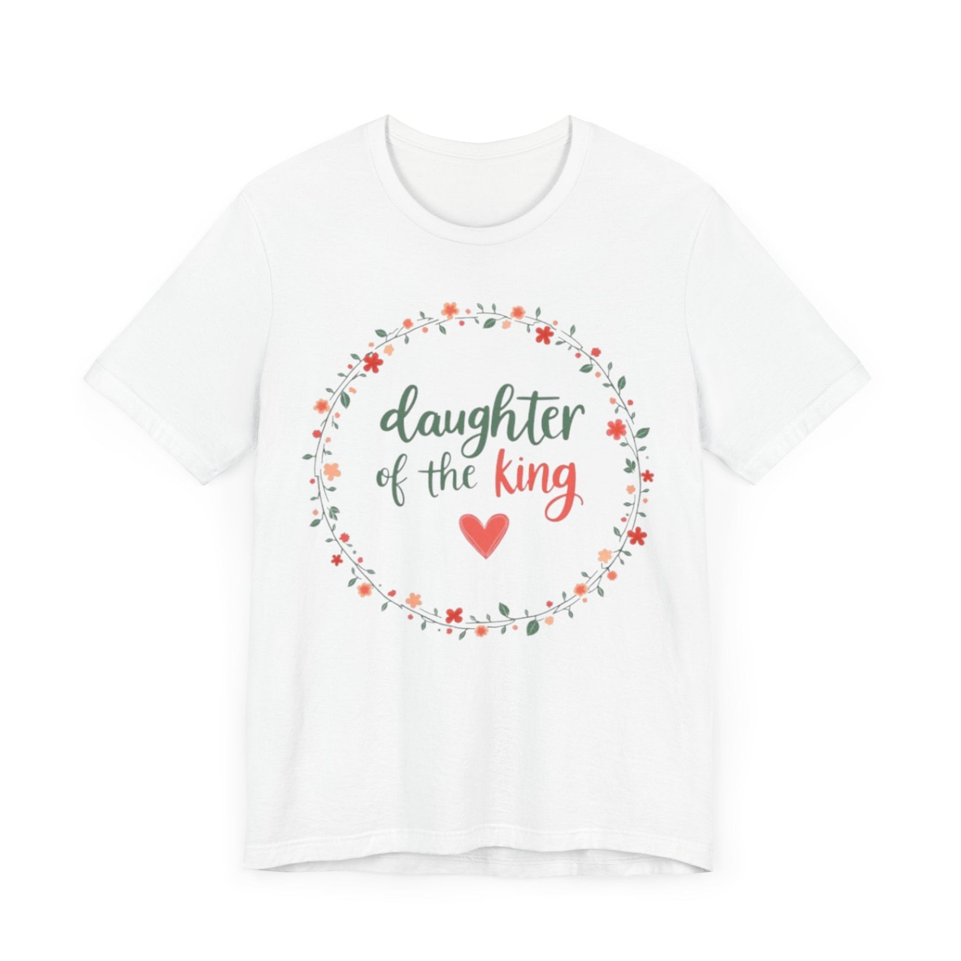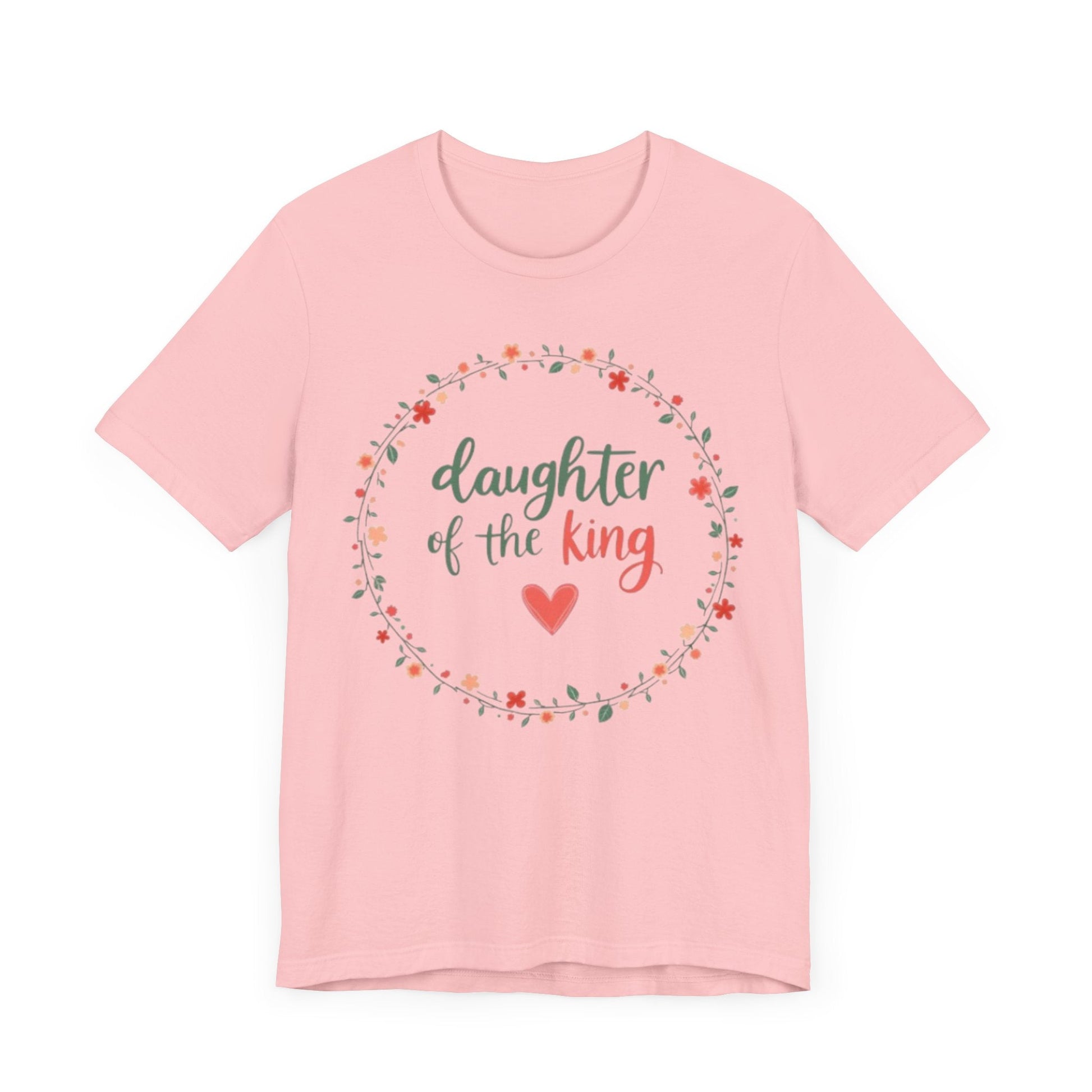 This enchanting design features the phrase "daughter of the king" in a whimsical font, gracefully encircled by a heart and complemented by delicate pastel flowers. Perfect for those who value joy and beauty in their decor.