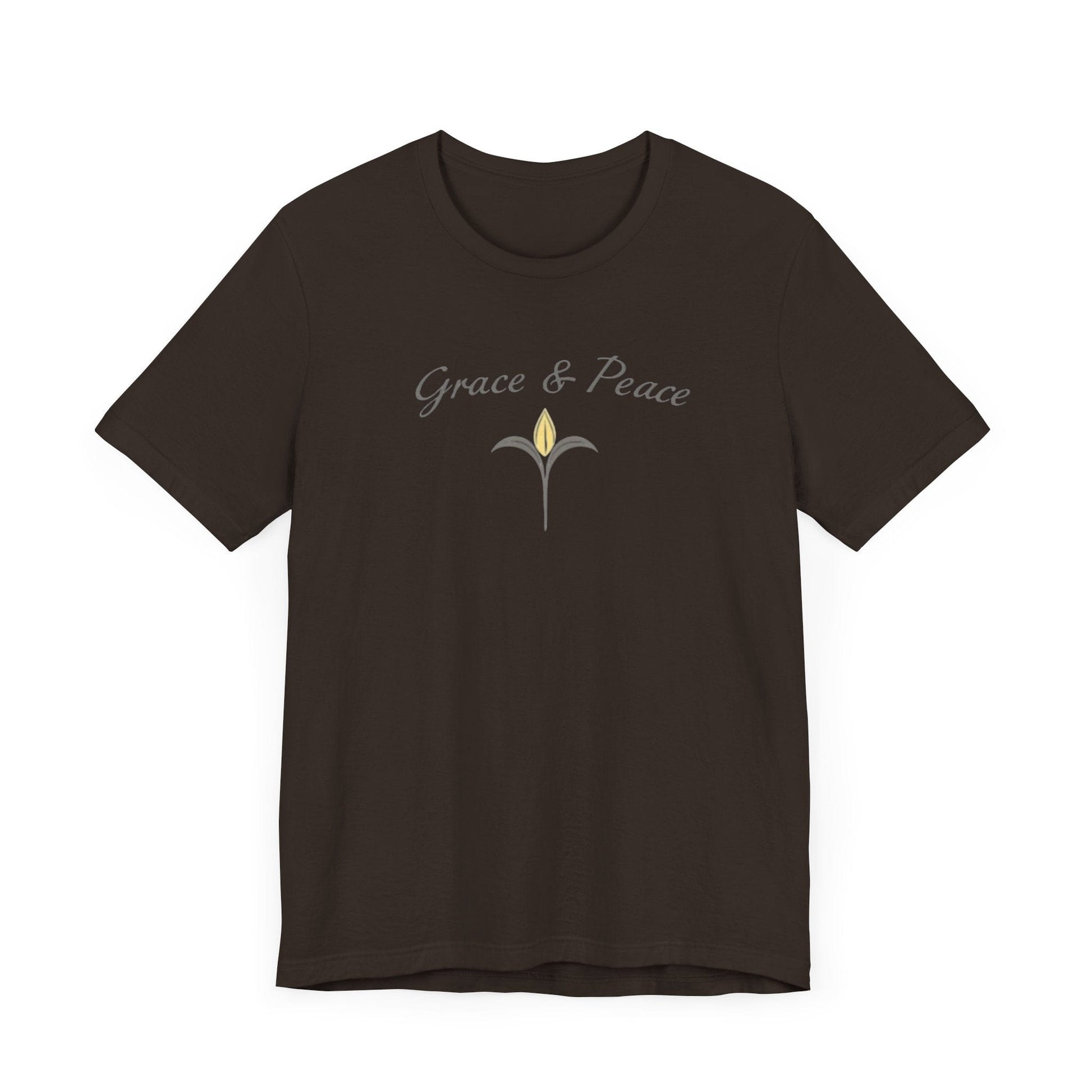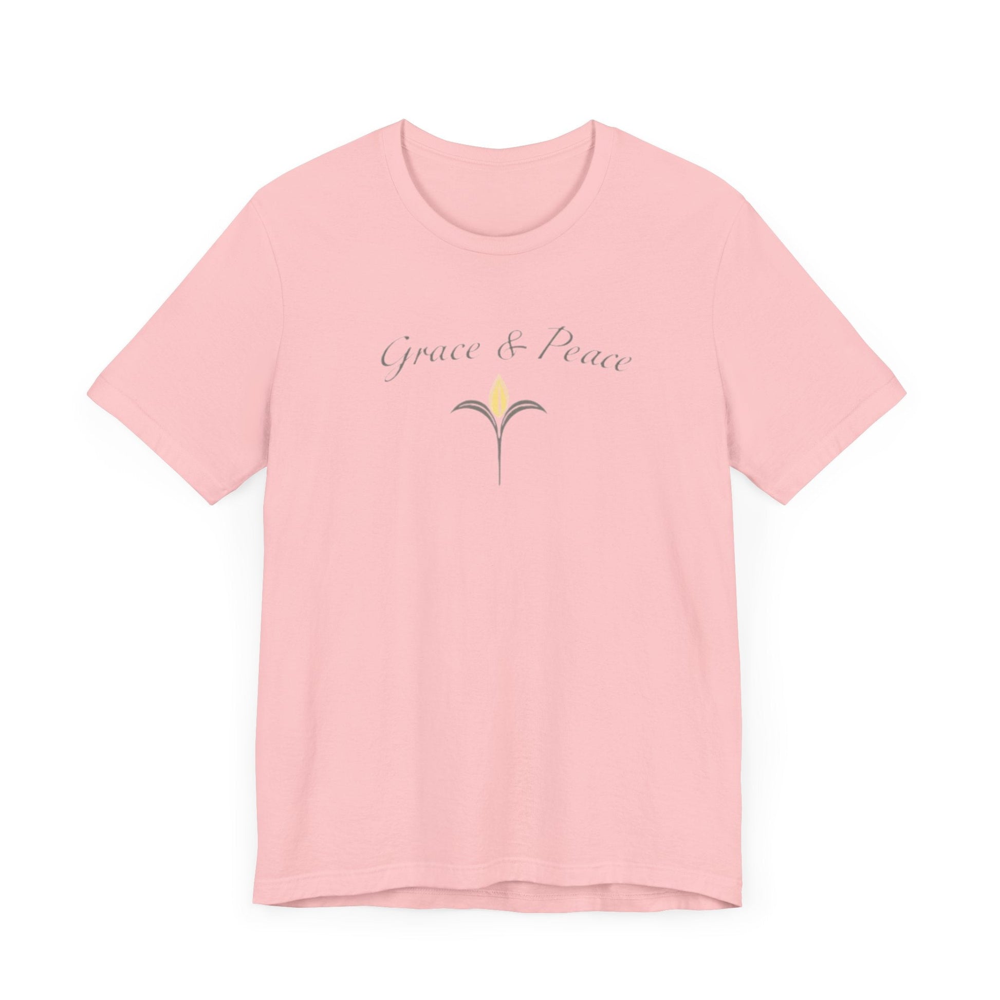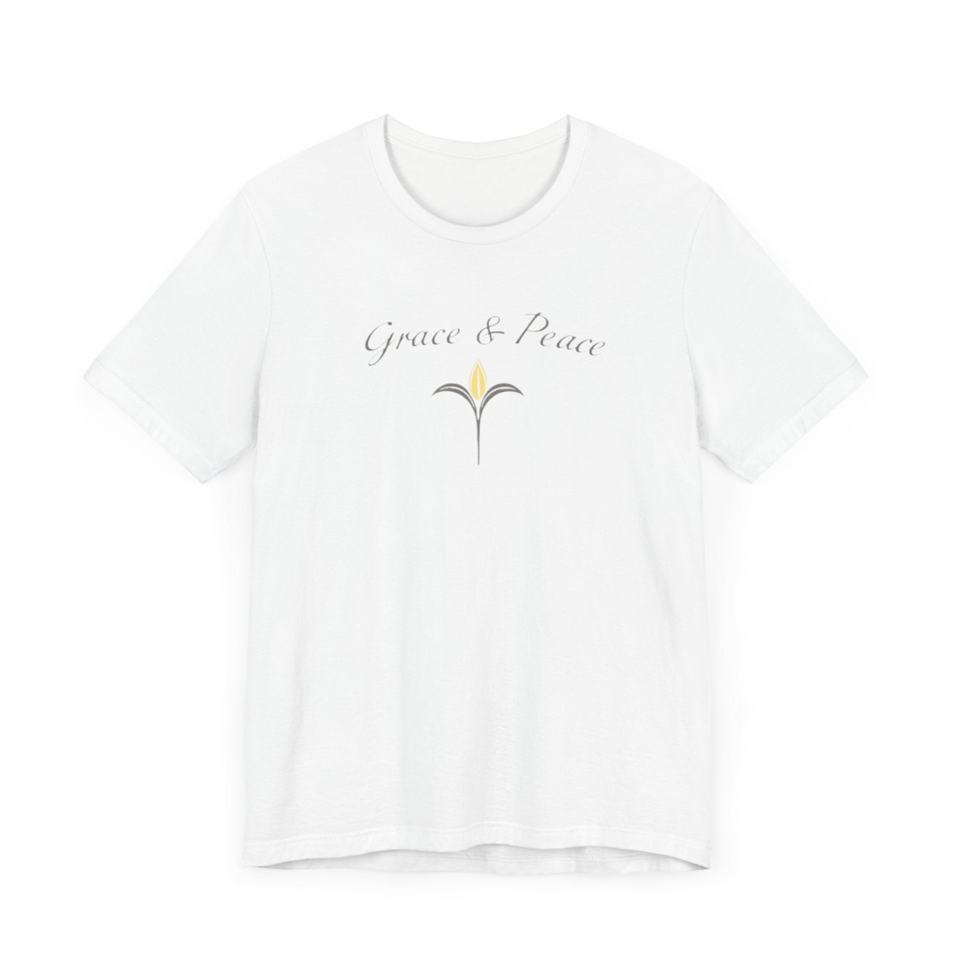 This design beautifully blends grace and peace, featuring the phrase in an elegant serif font above a minimalist lily flower, using soft colors to create a calm and balanced aesthetic. Perfect for adding tranquility to any space.